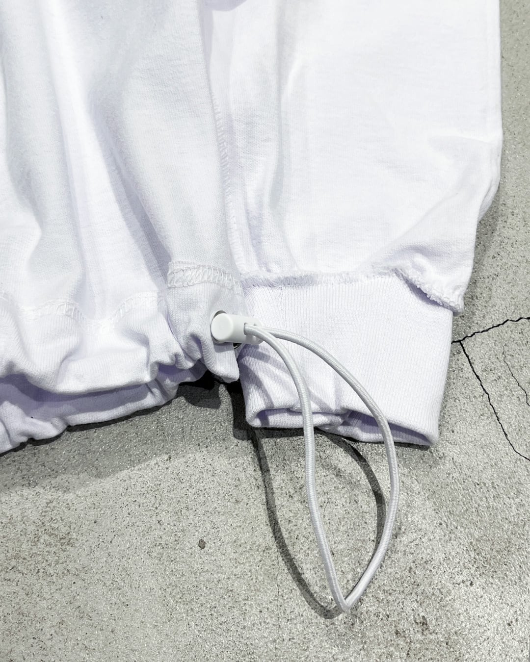 裾もドローコード仕様にしていますので、ジャストサイズで絞りを楽しむもよし、ワンサイズ上でタックインしたようなシルエットにするもよし。お好みで楽しんでください。