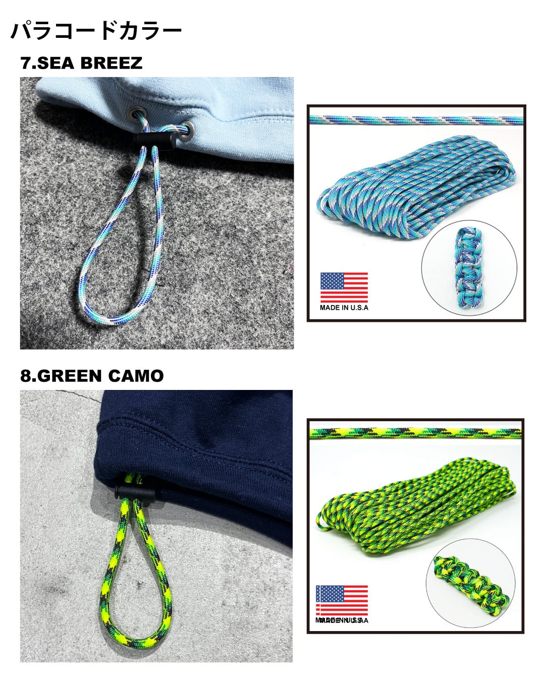 Made in USA製のTIGER パラコードを使用し、10色の柄を厳選しました。