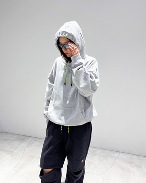 「GILDAN」定番フーディのフード紐をパラコードに変更し、裾の仕様も2種類から選べるセミオーダーカスタムフーディ。