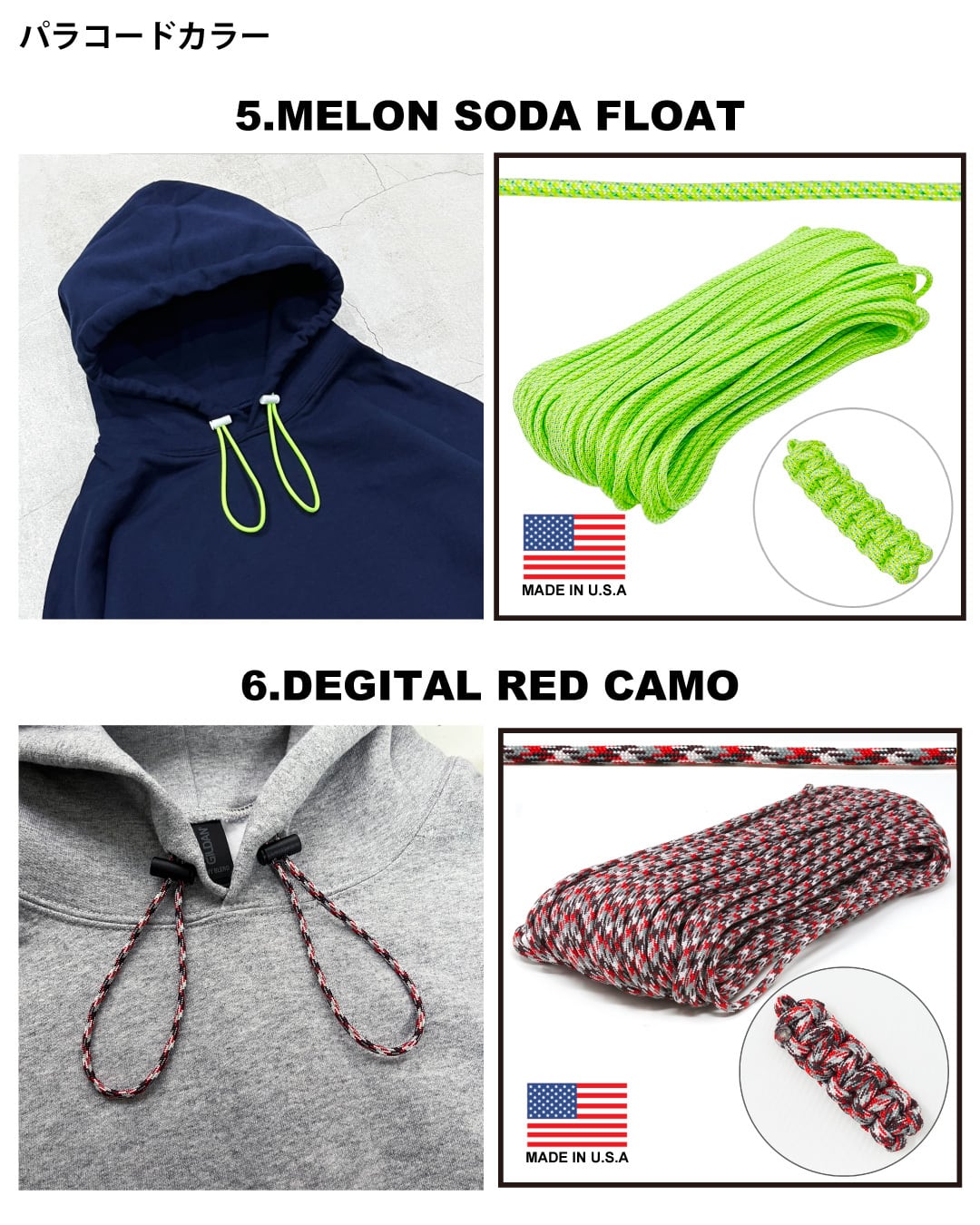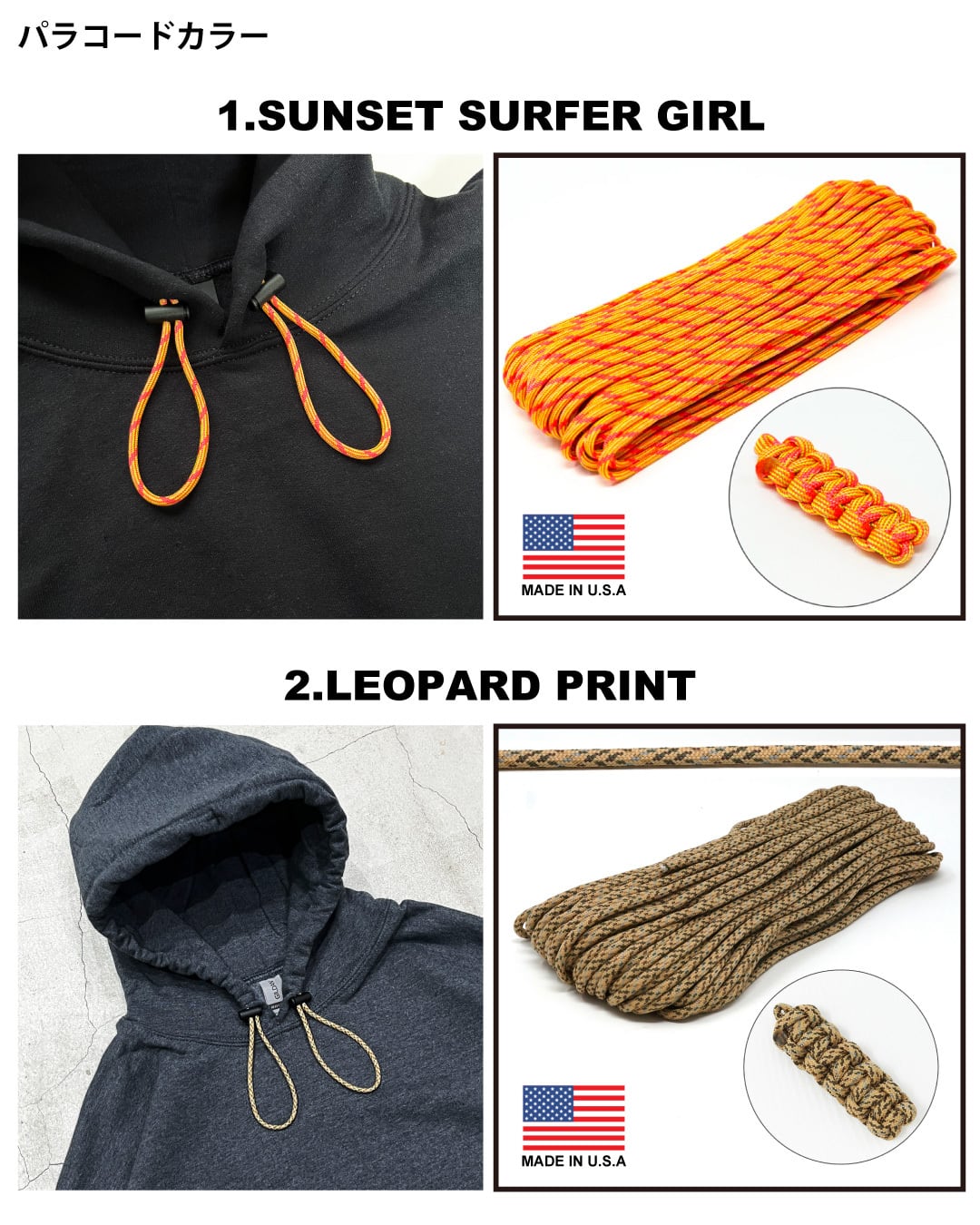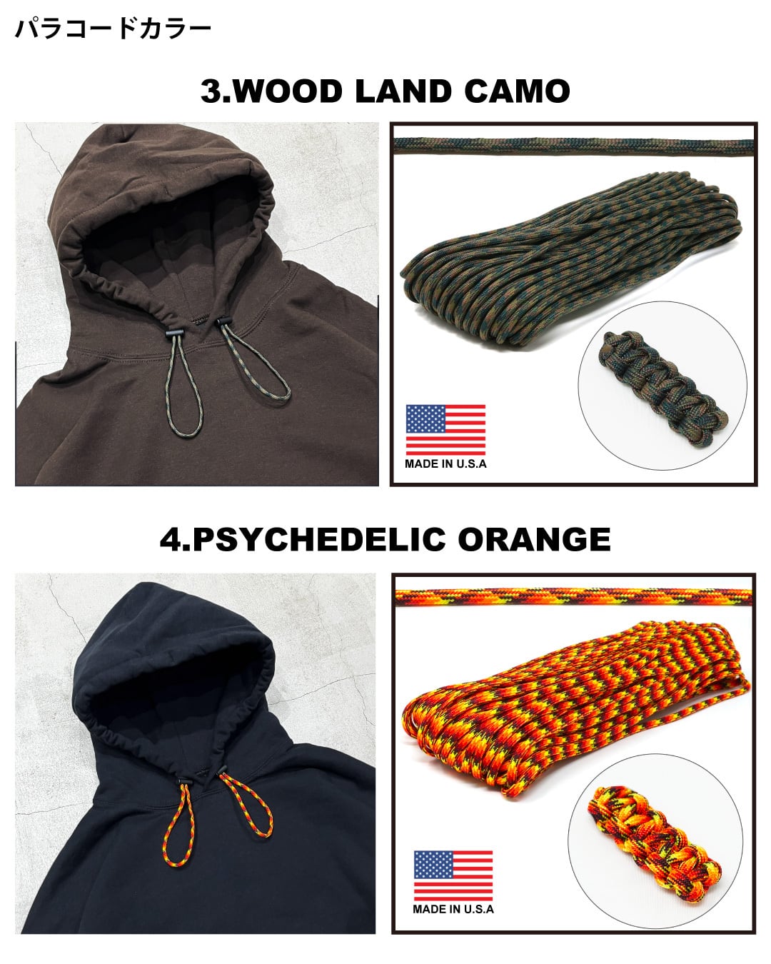Made in USA製のTIGER パラコードを使用し、10色の柄を厳選しました!