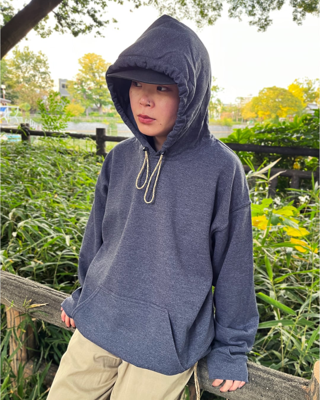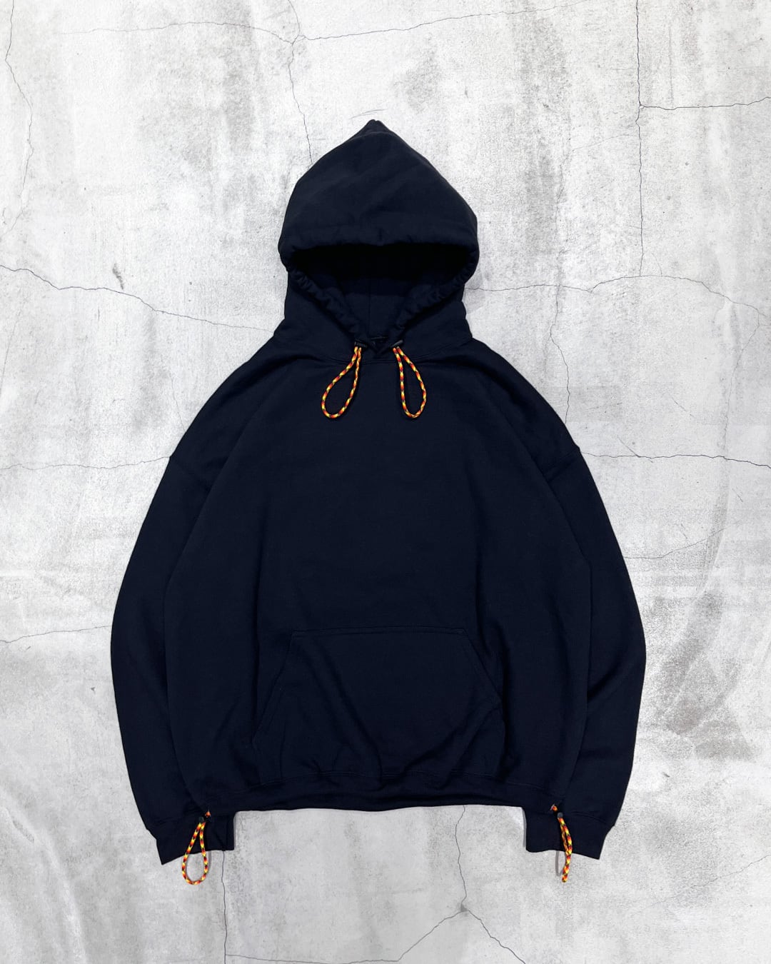 「GILDAN」定番フーディのフード紐をパラコード&フードをダブルループ仕様に変更した裾の仕様も2種類から選べるセミオーダーカスタムフーディ。