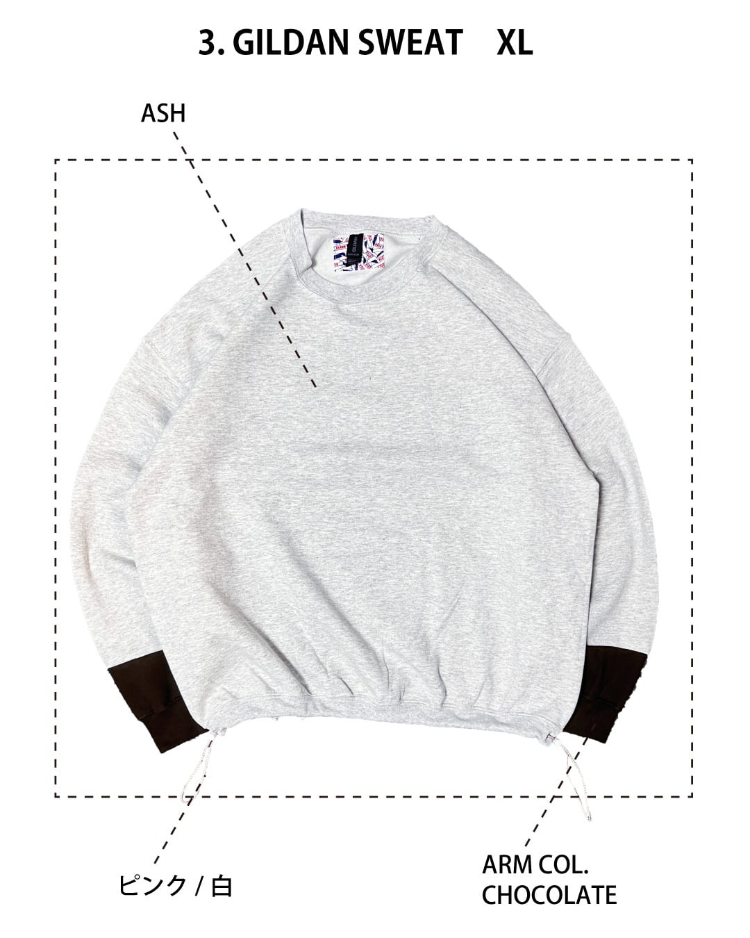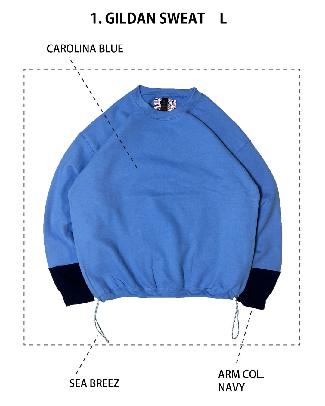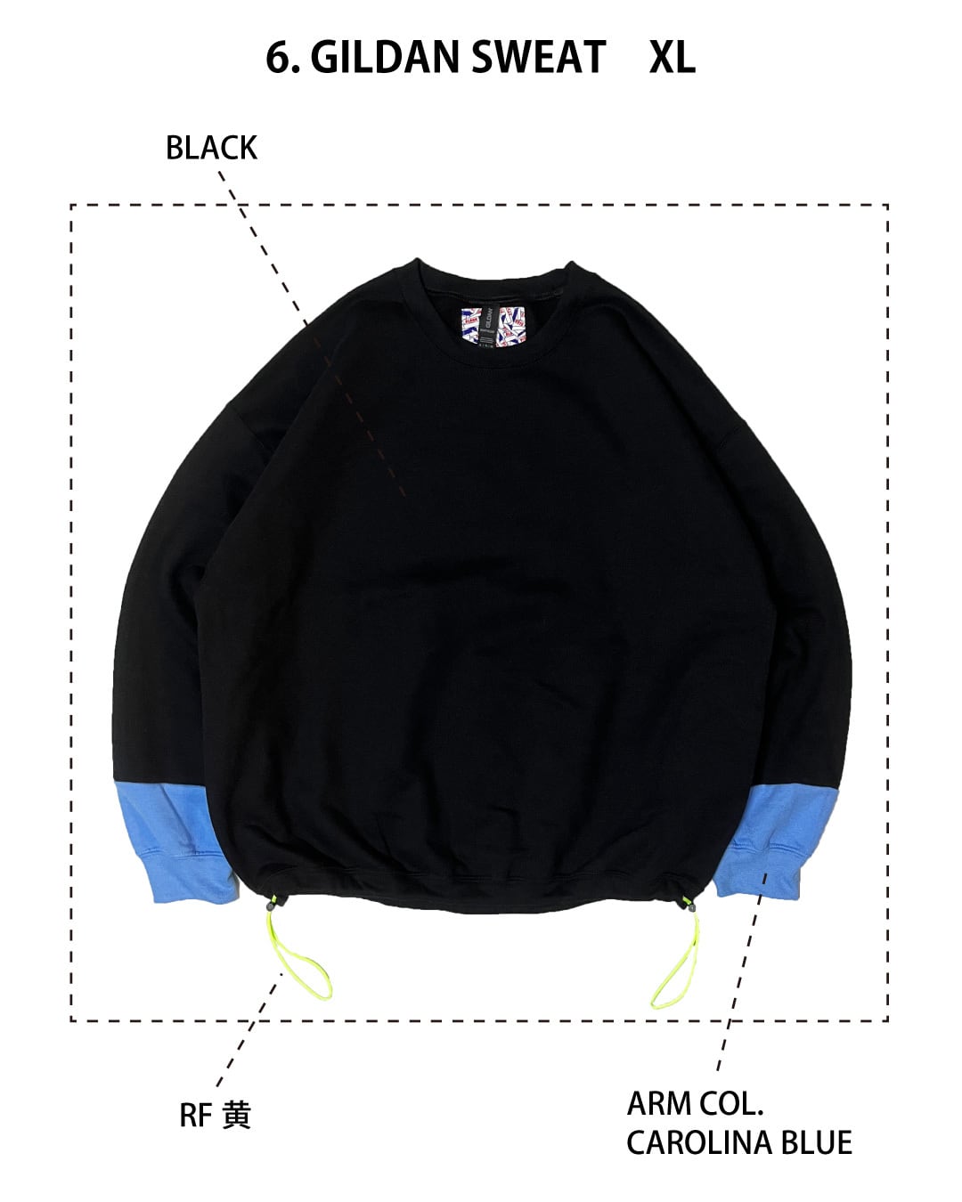 去年販売していたBICOLOR HOODIEのように袖を少しだけ切り替えて配色にしてみました。