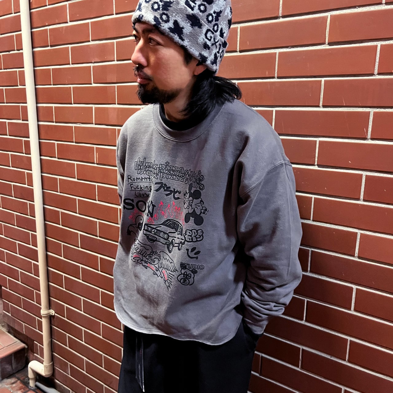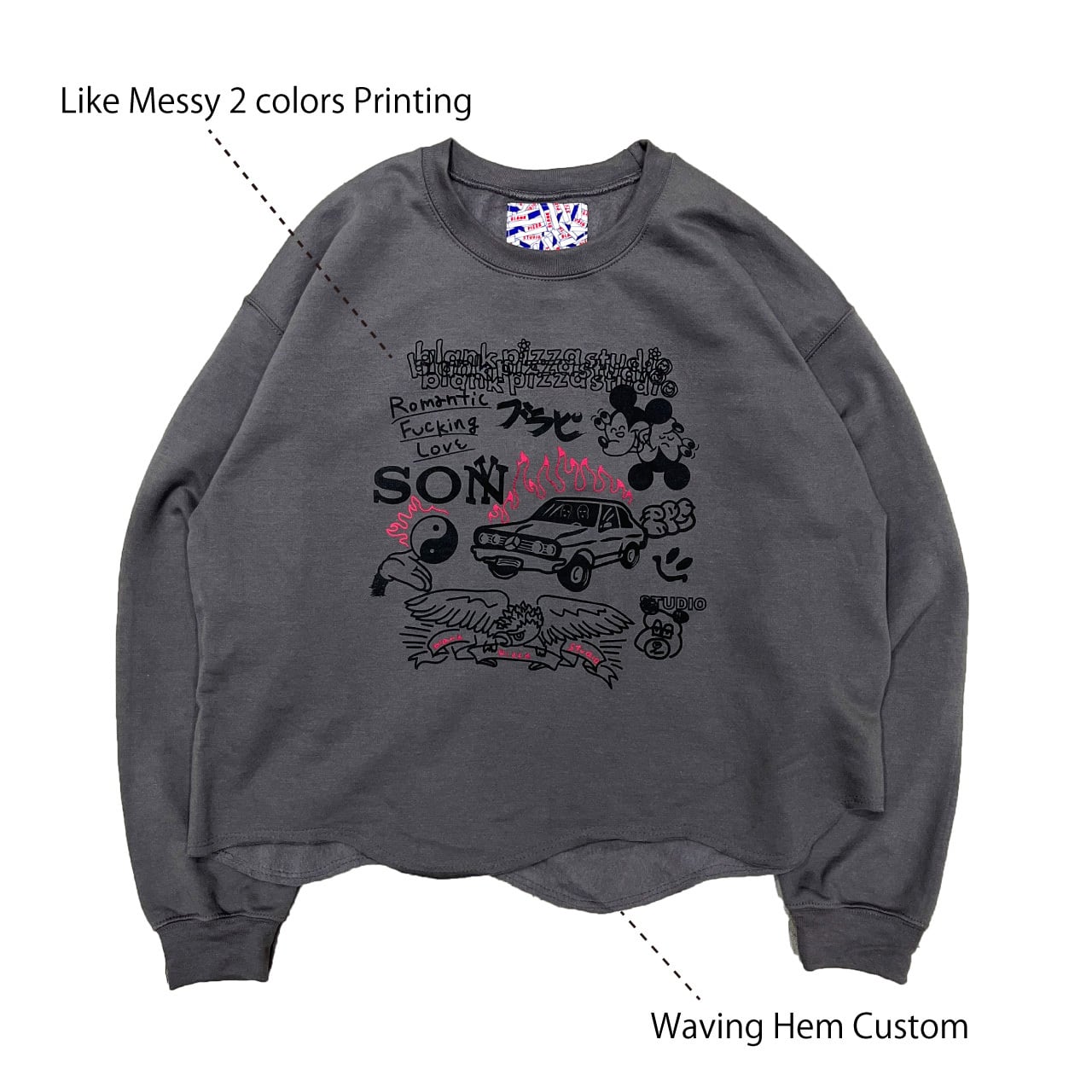 裾を波打ったように舵行させたカスタマイズスウェット。
