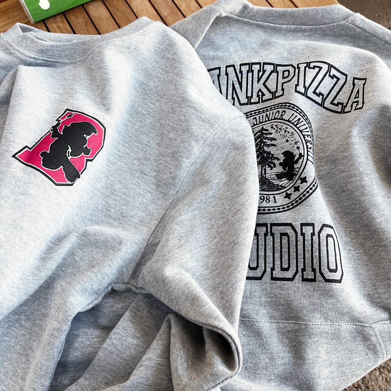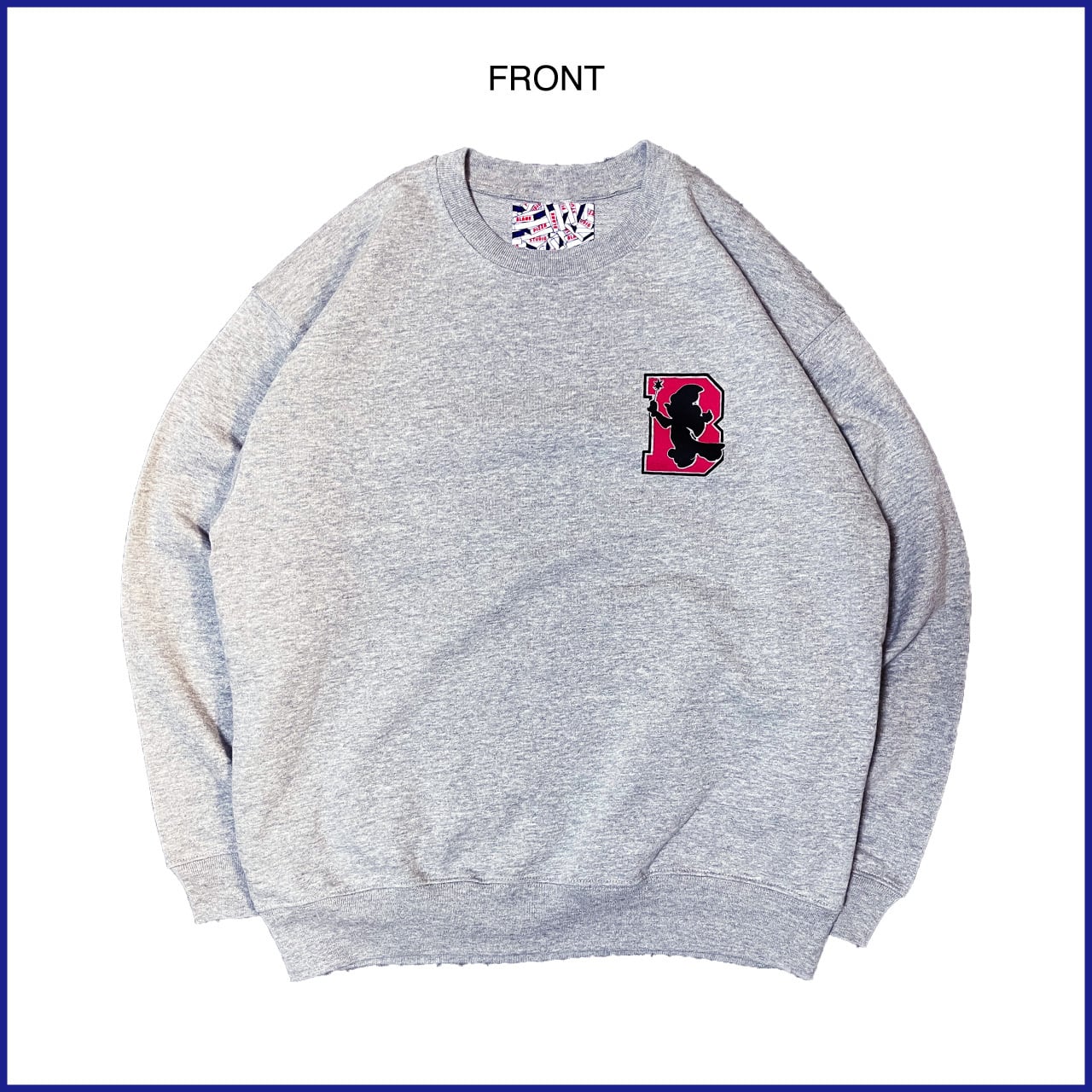 今回プリントも後ろに配置し、前後がまるまる逆になったようなユニークなスウェットに仕上がりました。