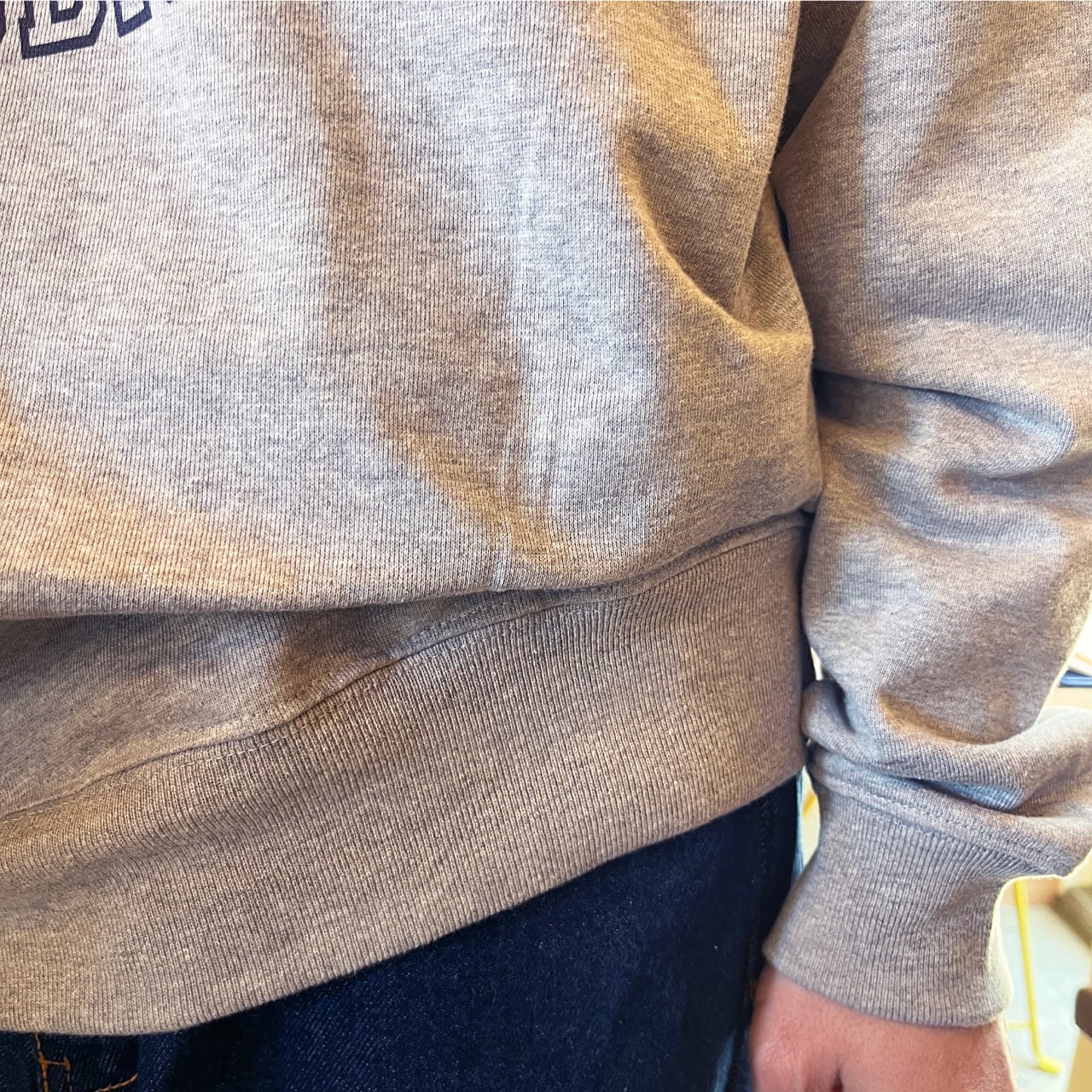 服をタックインして動き回っていると、気づいたら片側だけスボンから少し出てしまっているときのあれ、あのシルエットを再現したスウェットを作りました笑