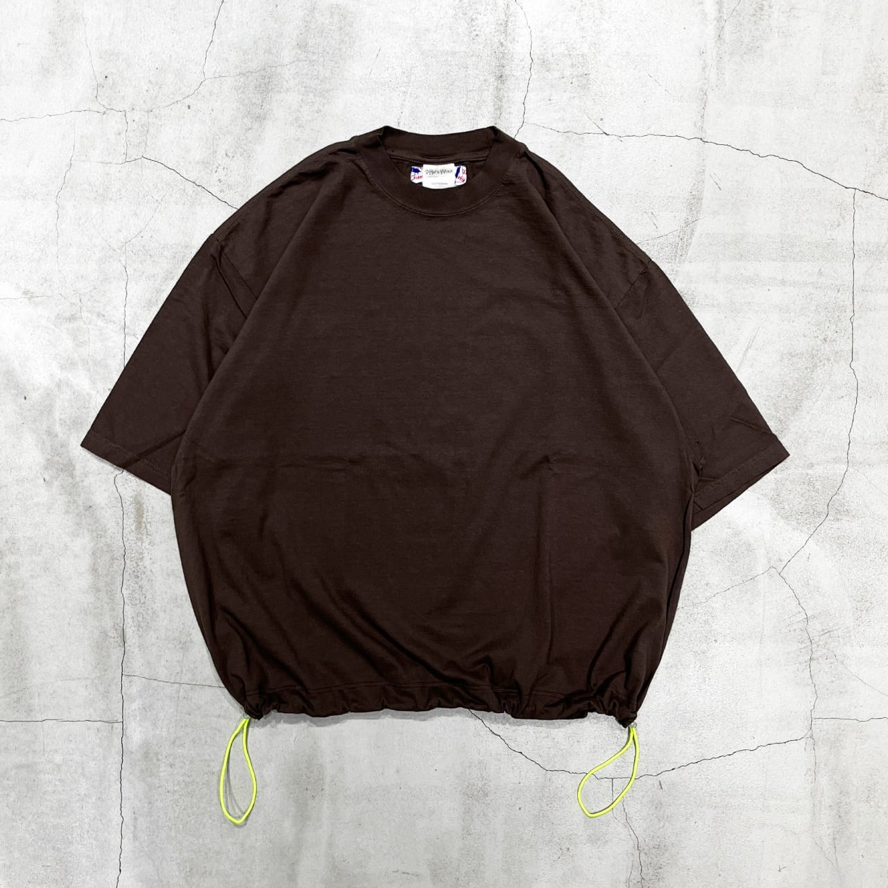 人気の高い「SHAKA WEAR」7.5oz ガーメントダイドロップショルダー肉厚Tシャツの裾をドローコード仕様にカスタム。