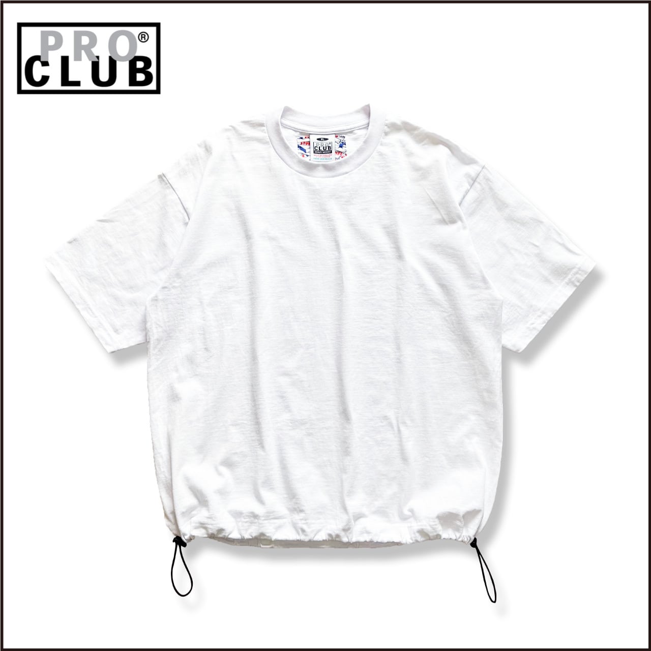 【受注生産 3XL】PRO CLUB 6.5oz ドローコードカスタム TEE (WHITE / BLACK)